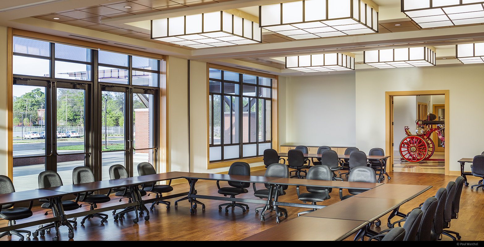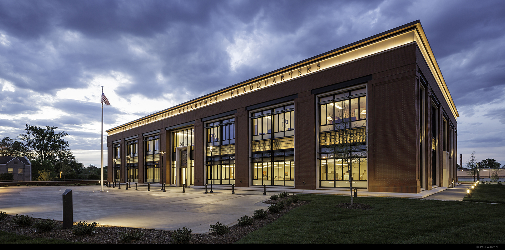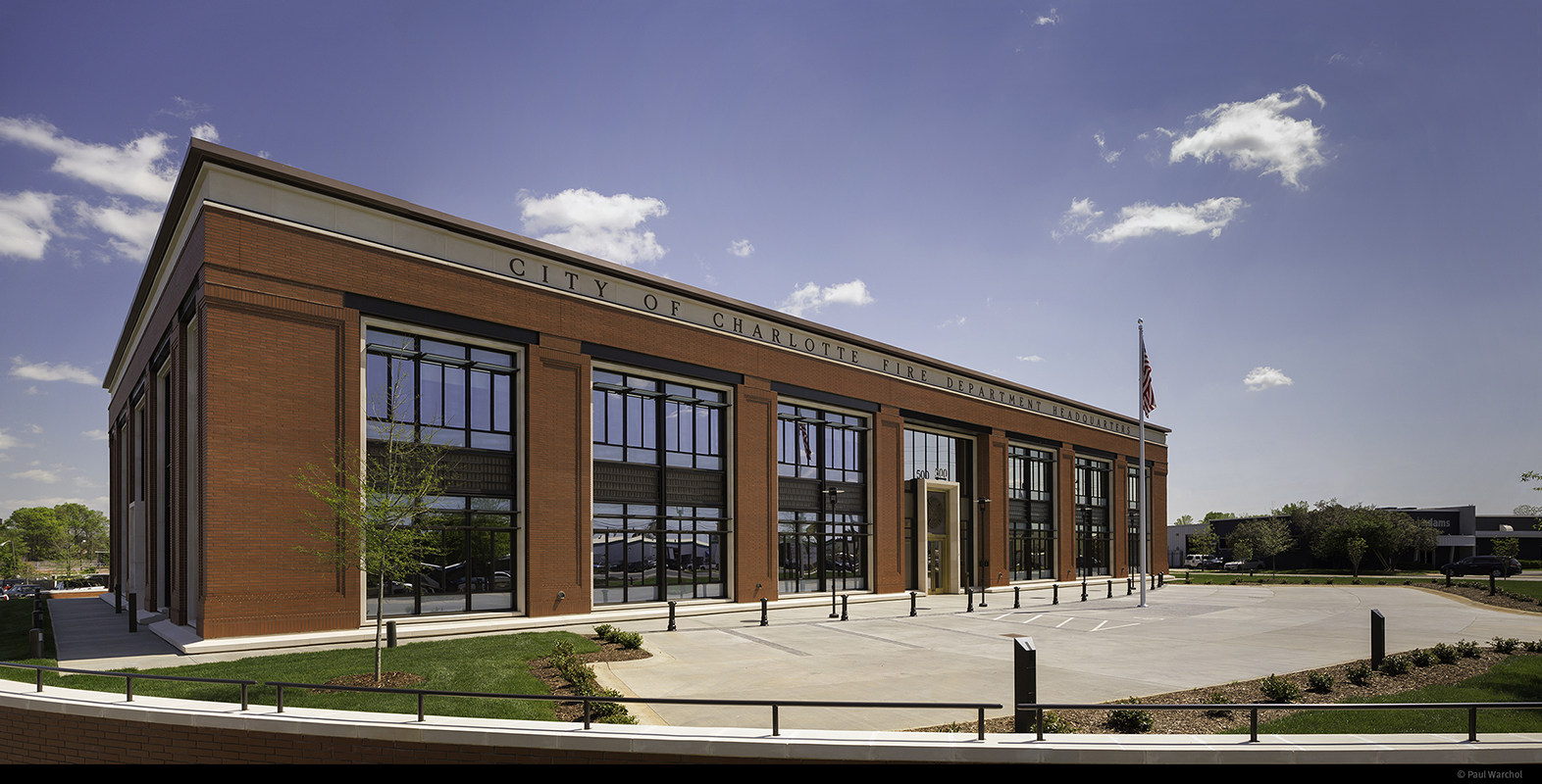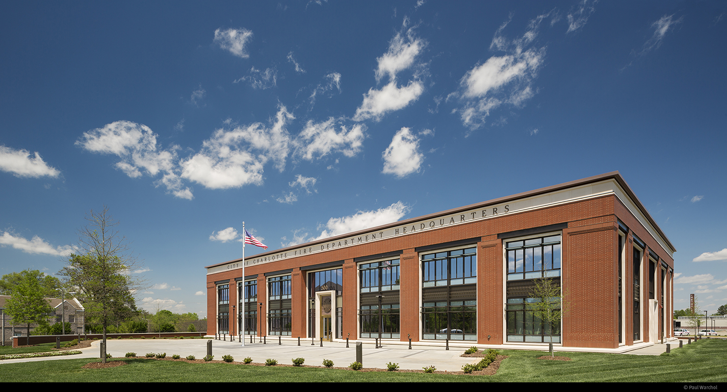 The City of Charlotte Fire Department runs an exemplary operation as a most progressive and modern fire service and harbors a strong respect and institutional memory for its past. The timeless expression of dignity, tradition and history of the 170 year old department were foremost attributes to be captured and reflected in the new headquarters design. With close collaboration among the designers, Fire Department Command Staff and City of Charlotte project management, the design process began with a period of interviews and detailed programming to explore the functional and spatial needs of the administrative departments to be collocated. Project design evolved through an intensive conceptual phase then careful and exploring design development; culminating with production of a most thorough package of drawings and specifications in preparation for a construction contract award to the lowest bidder.