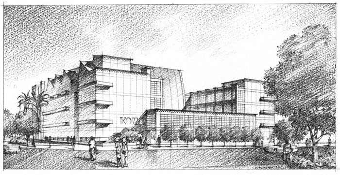 Program: 130,000 gross square feet, parking for 240 cars, performance hall (800 seats), lecture hall (200 seats), exposition halls and storage, studio, library, traditional garden and restaurants.