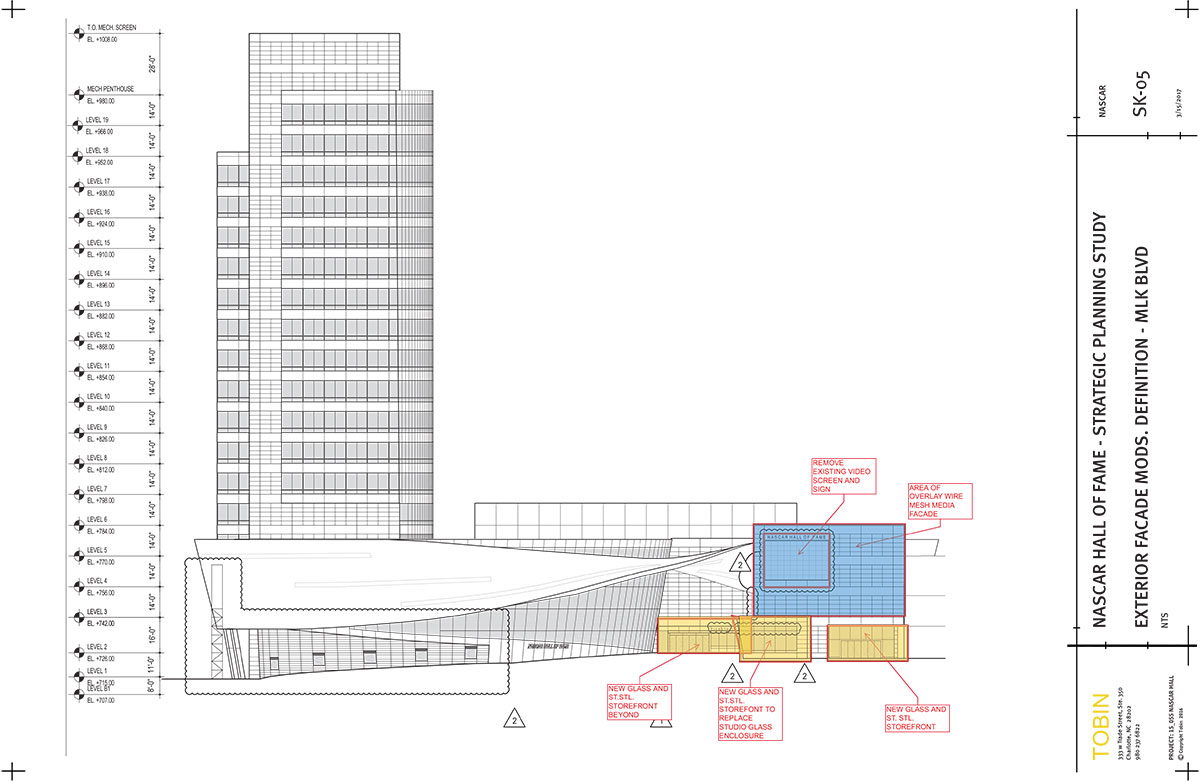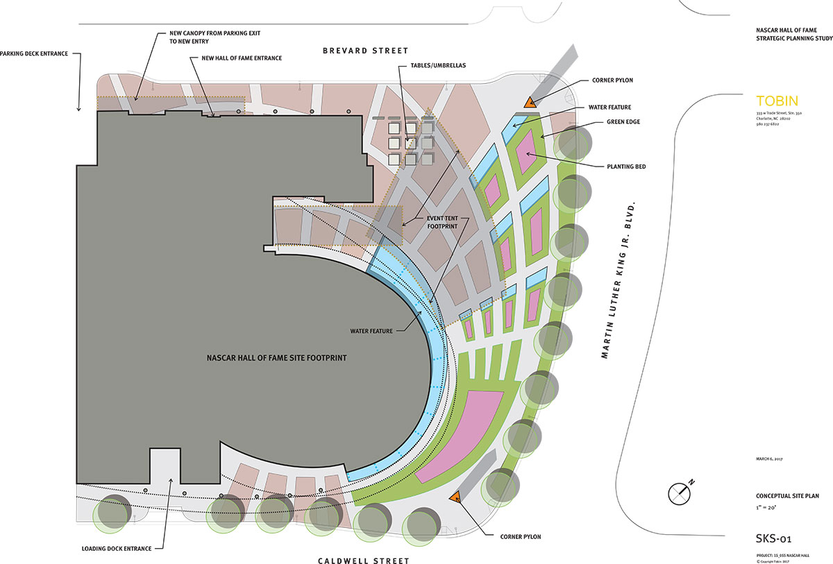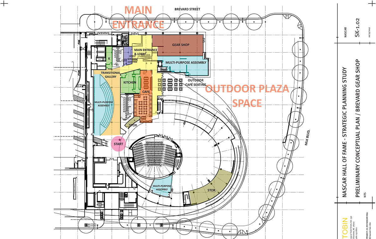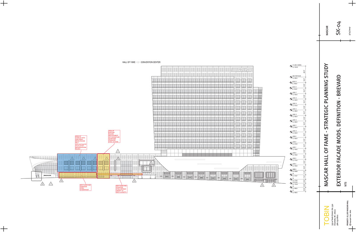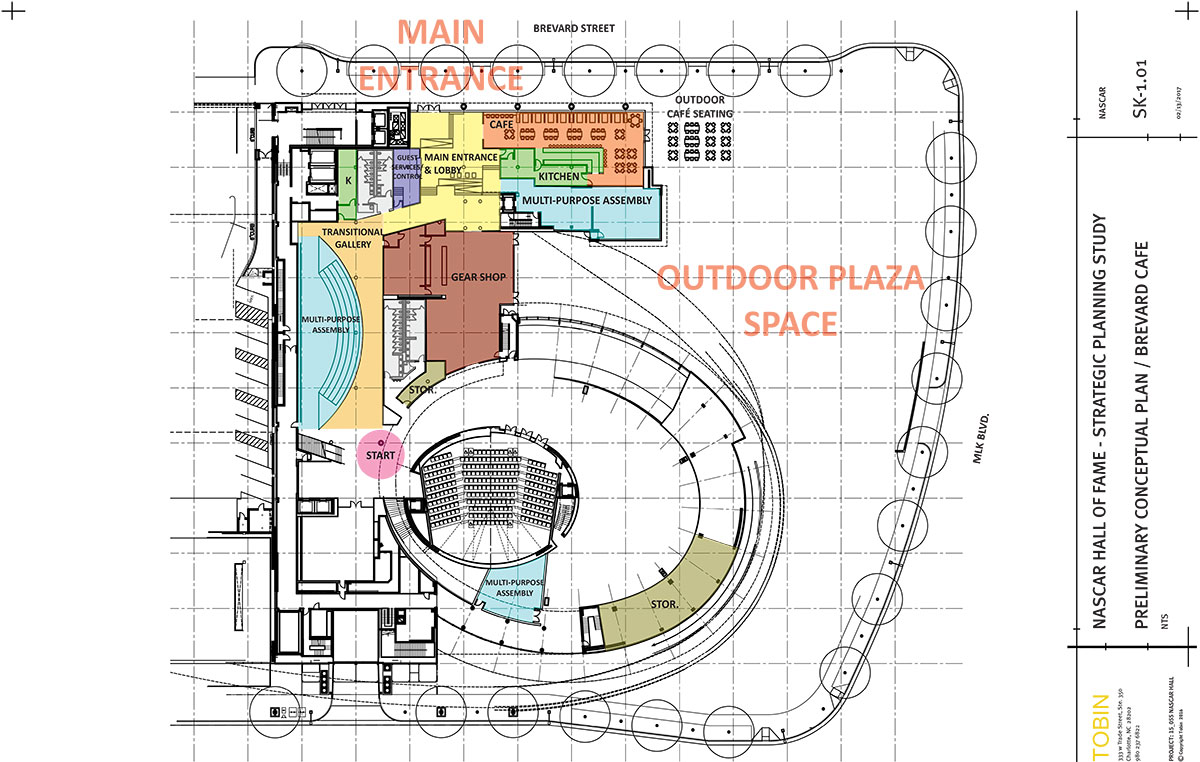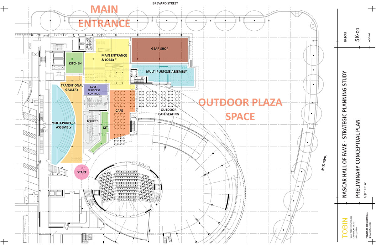 Tobin served as on-site representative for the New York-based design architect, Pei Cobb Freed & Partners, and Architect-of-Record on behalf of exhibit designer, Ralph Appelbaum Associates, for the auditoria and exhibit spaces for the original NASCAR Hall of Fame (NHoF) completed in 2010. It was a natural progression with this planning assignment to develop a Strategic Plan for the Hall of Fame in 2016-17.